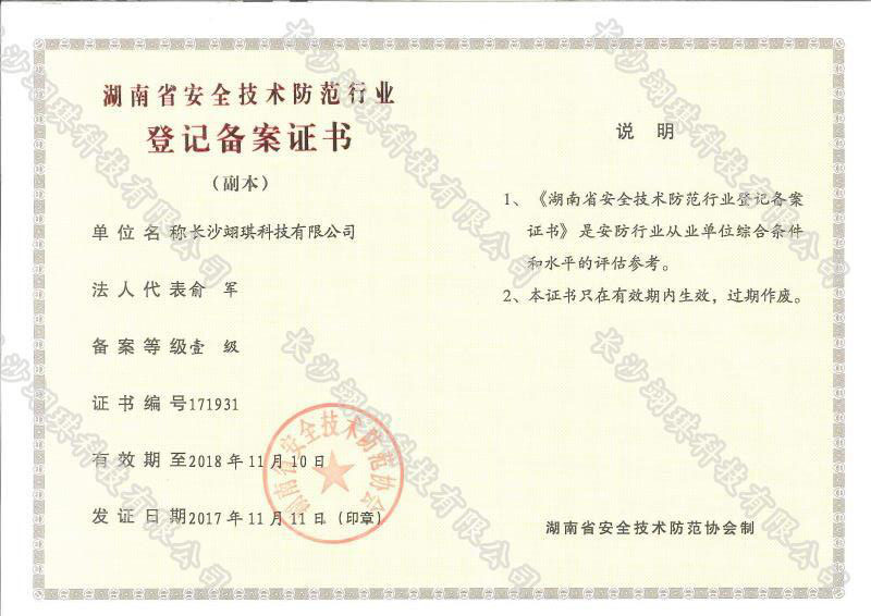 安全技術(shù)防范行業(yè)登記備案證書(shū)
